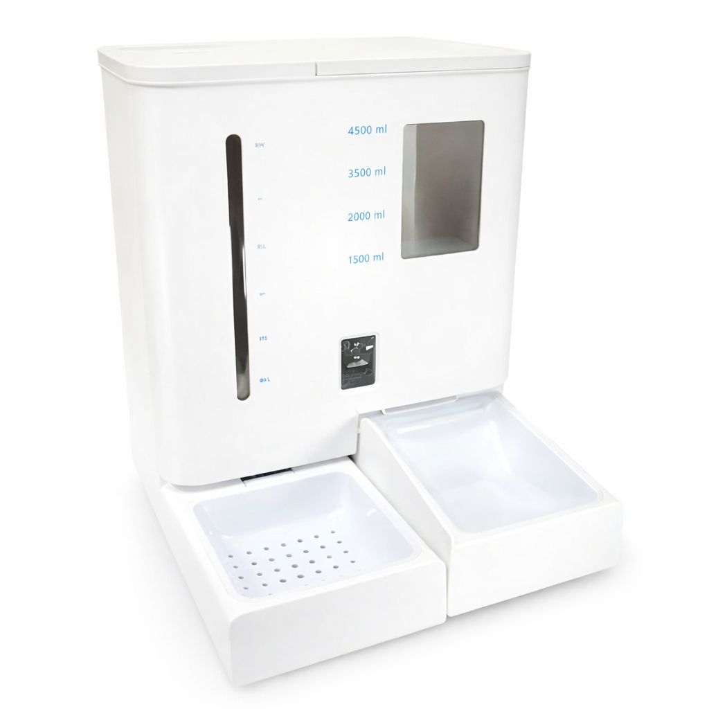 Su diseño todo en uno combina alimentación automática, hidratación constante y monitoreo en tiempo real con tecnología inteligente.