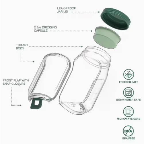 1 Contenedor de Ensalada Mason Jar con Tapa de Apertura Lateral – Jarra de Vidrio Resistente para Hacer y Almacenar Ensaladas, Apta para Microondas, Apta para Lavavajillas, Perfecto para Ensaladas, Sopas, Salsas, Almuerzo – Ideal para el Hogar, la Oficina, Viajes, Contenedor de Ensalada, Almuerzo de Oficina