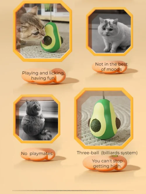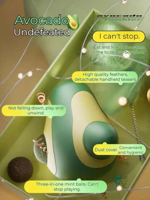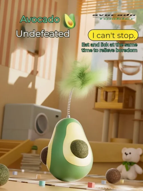 Este juguete para gatos con catnip natural en forma de aguacate es el aliado perfecto para mantener a tu felino activo, relajado y entretenido durante horas. En su interior cuenta con una esfera giratoria de hierba gatera, que estimula los sentidos del gato y despierta su instinto natural de juego, ayudando a reducir el estrés, la ansiedad y el aburrimiento.