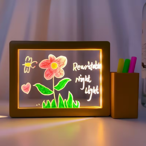 1pc Tablero de Mensajes Sobrescribible con Luz Nocturna, Lámpara de Mesa Recordatorio de Acrílico Transparente USB, Decoración Bonita para la Habitación y Regalo de Escritorio